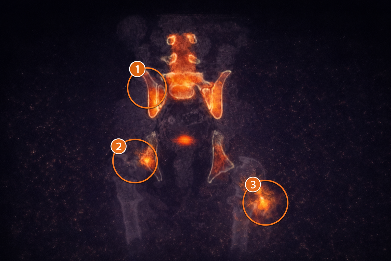De nucleaire scan maakt het mogelijk om te beoordelen welke structuren daadwerkelijk biologisch actief zijn, en helpt daarmee onderscheid te maken tussen: