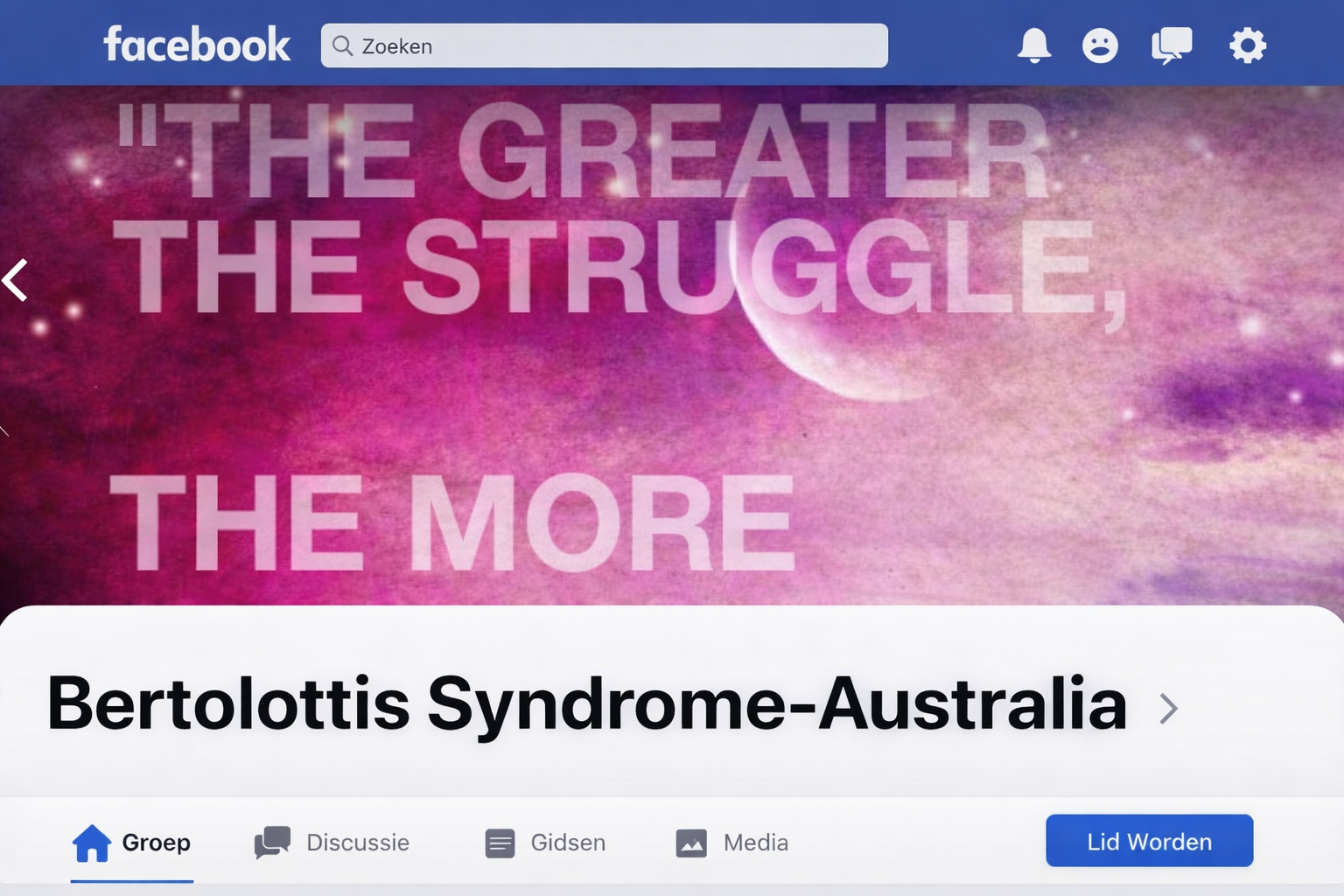 Over de hele wereld bestaan Facebookgroepen voor mensen met het Bertolotti-syndroom. Deze groepen bieden herkenning, steun en de mogelijkheid om ervaringen te delen met lotgenoten – per land, taal of internationaal.