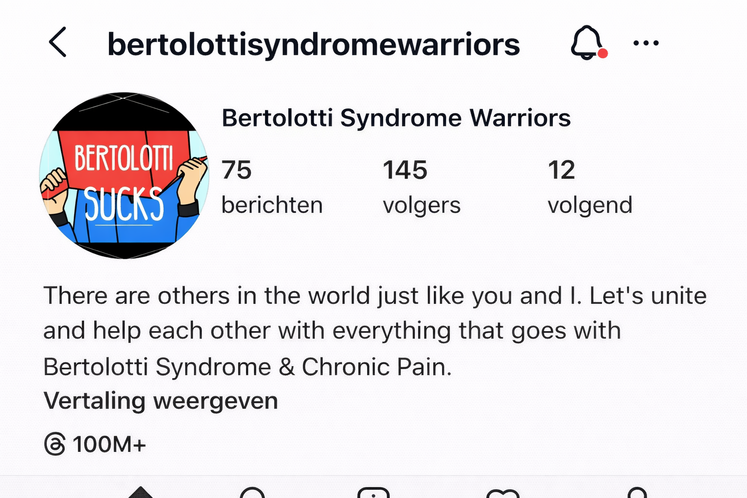 Ook op Instagram zijn er accounts en communities die aandacht vragen voor het Bertolotti-syndroom. Hier worden ervaringen gedeeld, bewustwording vergroot en mensen met elkaar verbonden – over landsgrenzen heen.